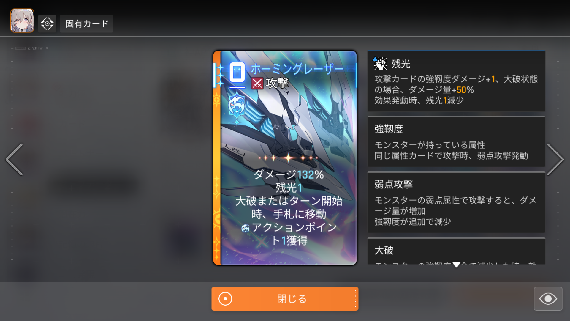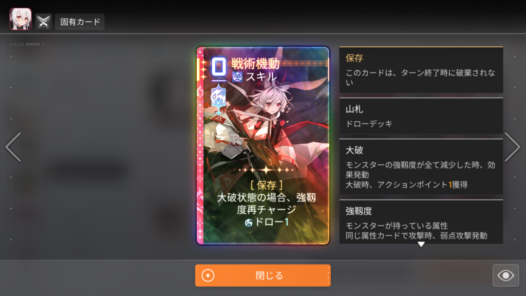 ・各戦闘員の開始カードにカテゴライズされている固有カード(ヒラメキが発生するカード)3枚