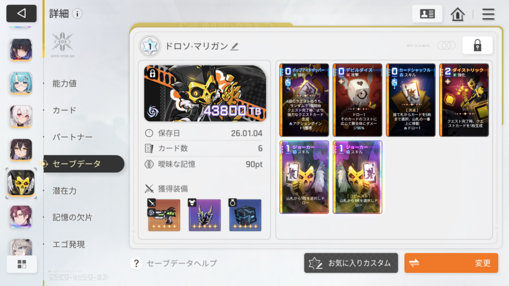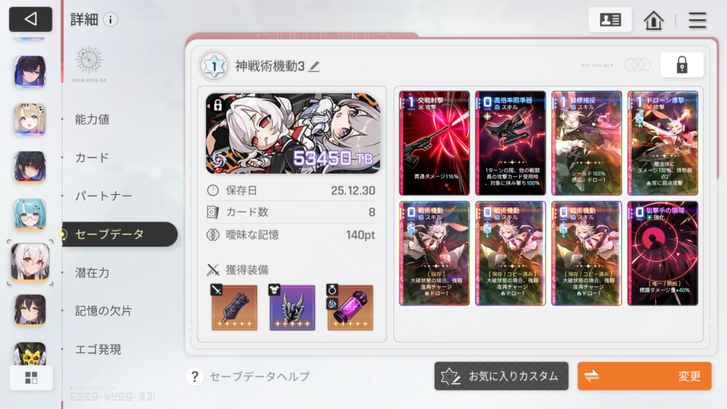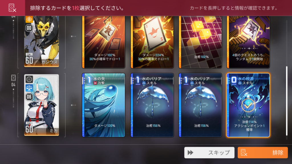 セーブデータ厳選を行う戦闘員の基本カードを削除したくなりますが、ここでは必ず