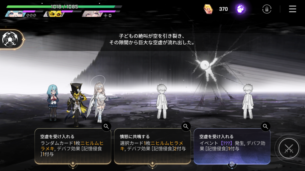 神ヒラメキは「渦巻き」に吸われたり、ボス戦までお目当てのカードがヒラメキすらしなかったり…私たちが崩壊してしまいます。
