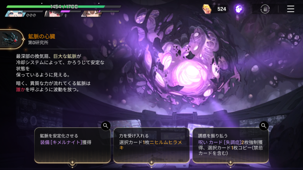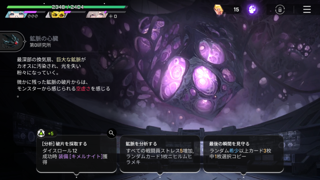 「第0研究所」の場合は「鉱脈の心臓1・2」がコピーイベントとして用意されています。