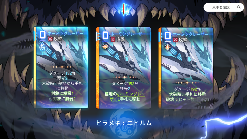 選択カード1枚をニヒルムヒラメキ(神ヒラメキ)させる選択肢もあるので、適宜使い分けましょう。