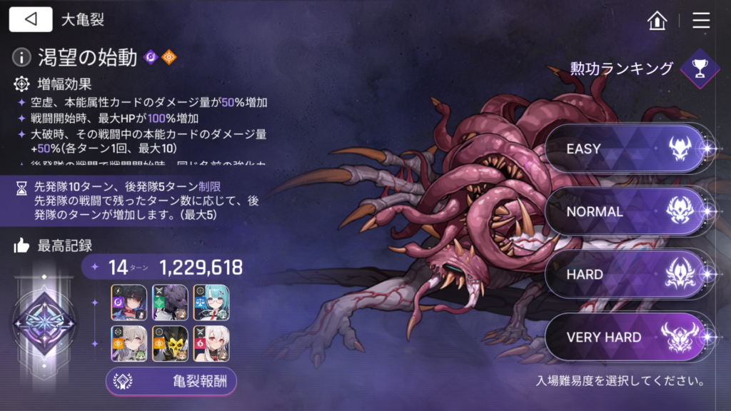 以上の内容の実践と試行回数で私の大亀裂のスコアは「1,229,618」、上位3%のダイヤモンド帯までは来れました。