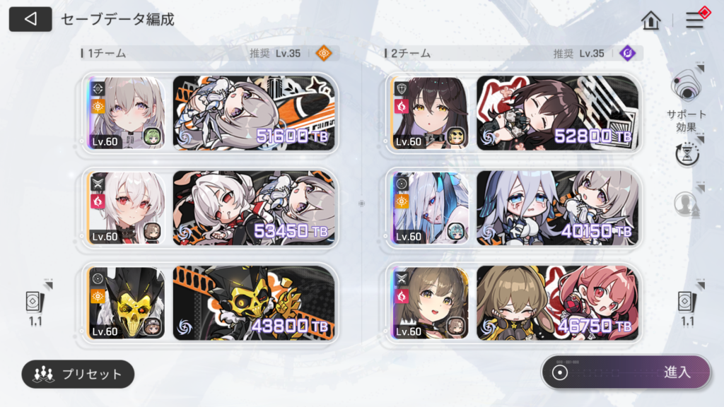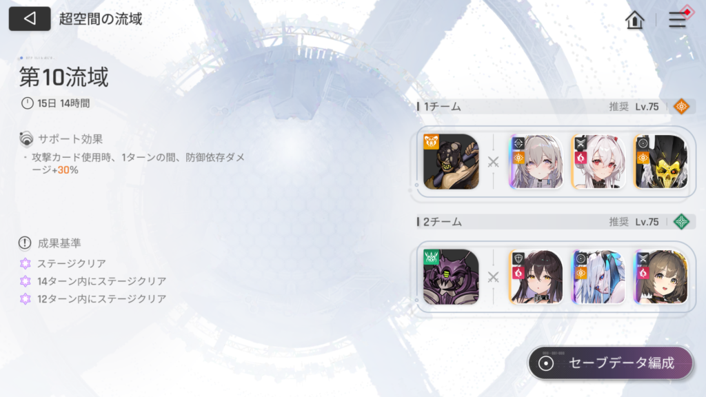 1チーム目のセレニエル・セレーナ・カシウスは後半の大亀裂でマスター帯まで登りつめた我が艦の最高戦力。