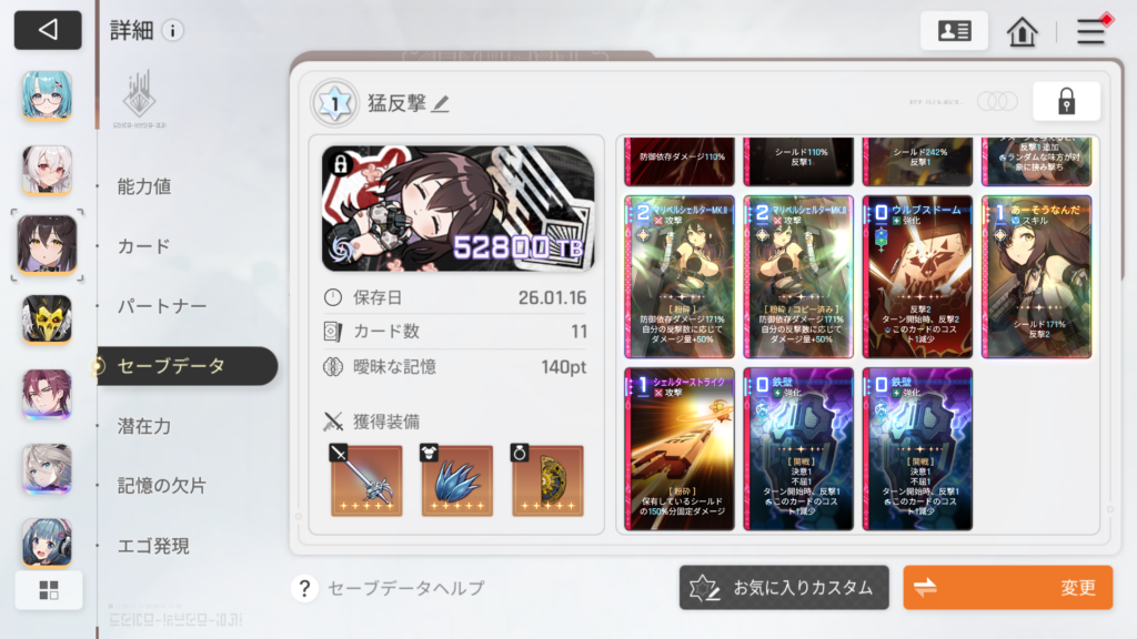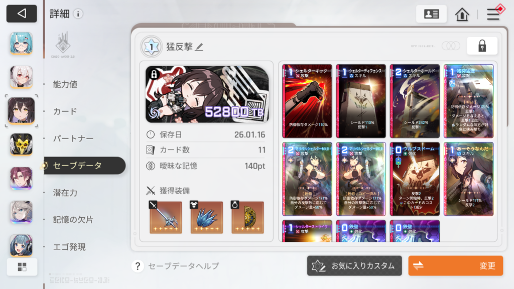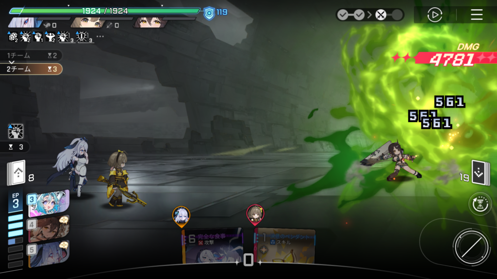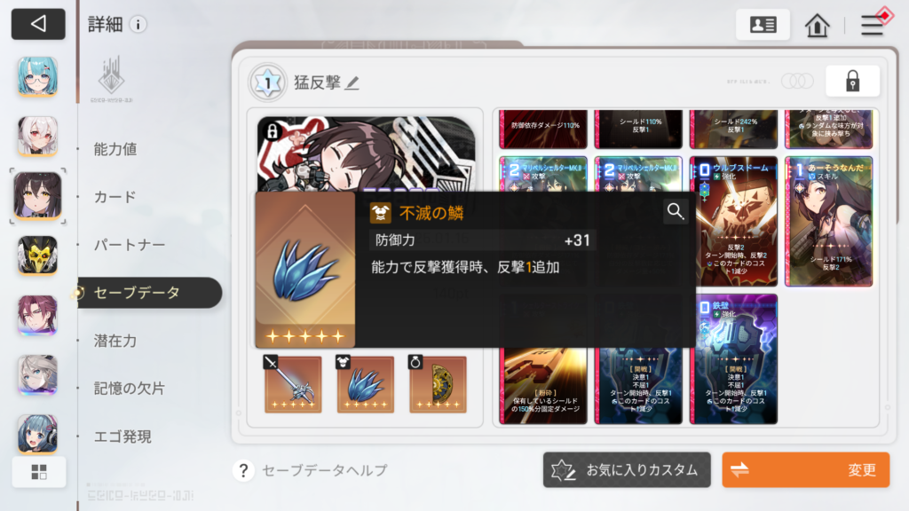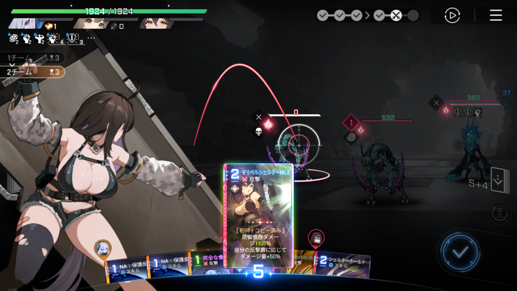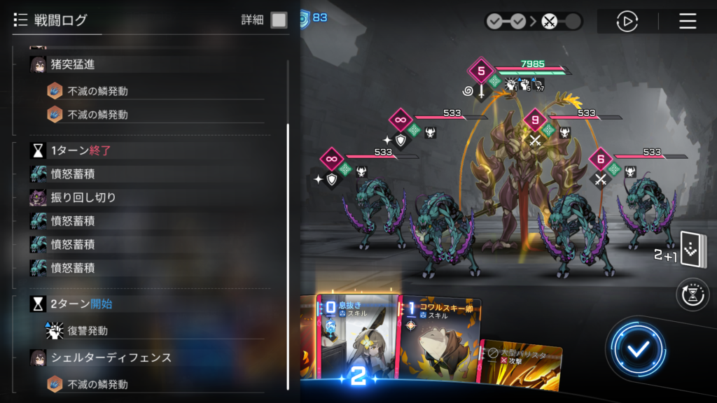 反撃のストック数は10が上限ですが、上限を気にしてカードを使用するくらい反撃の獲得効率が快適でした。