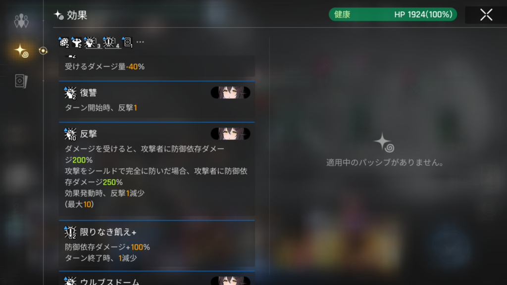 「シェルターディフェンス」を発動した後にバフの状況を確認しました。