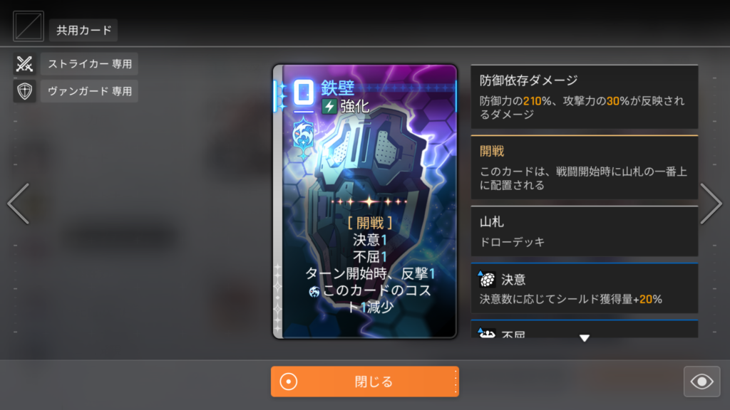 ポイントは「ターン開始時、反撃1」が付与できる「鉄壁」。