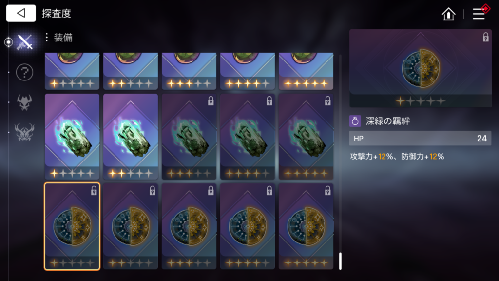 また私は確認できていませんが「新緑の覊絆」という上位互換のアクセサリー装備も存在します。