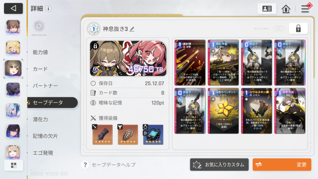 最適解かはさておき「防御依存ダメージ+100%」の「限りなき飢え」×4のセーブデータができました。