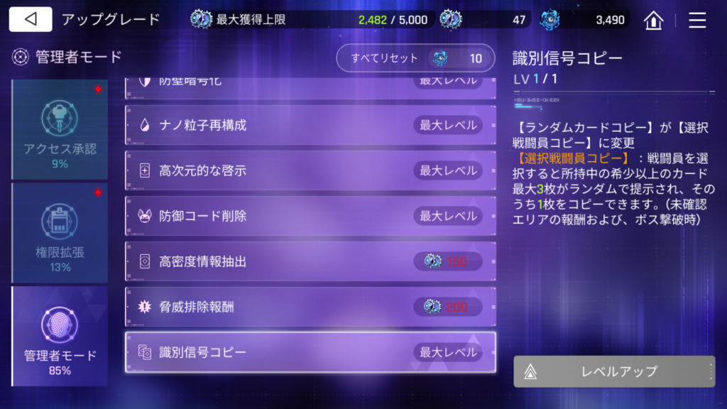 アップグレードは「アクセス承認」「権限拡張」「管理者モード」の3つに分かれており、それぞれ任意のタイミングでリセット可能。