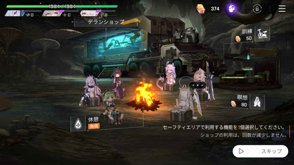 また「訓練」同様「瞑想」を選択すると「休憩」が使用できない点にも注意です。