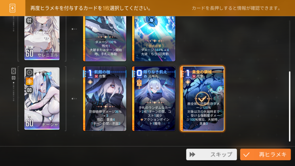 ヒラメキが発生していないカードは選択できません。