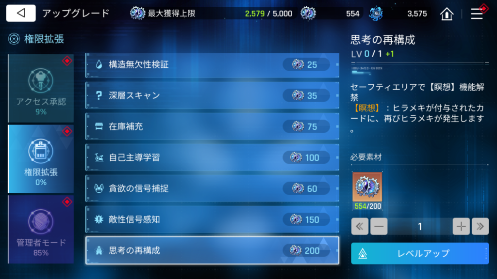 前の項目のレベルアップを強要されることなく「思考の再構成」をレベルアップできました。