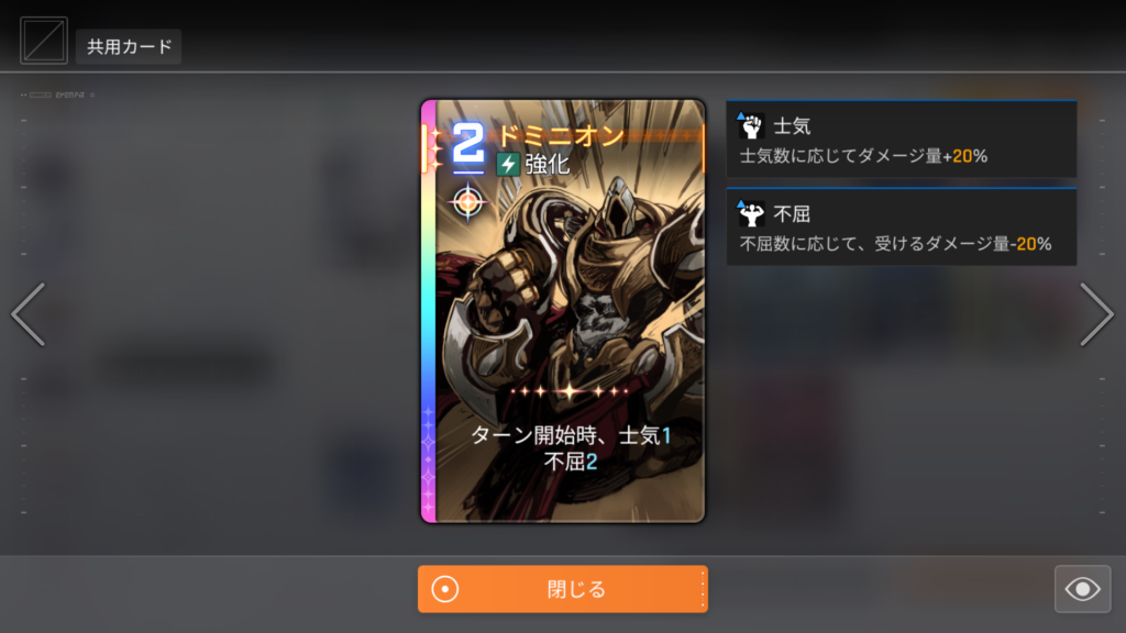つまり「挑戦する最初のエリアで「ドミニオン」を発動すると、最後のエリアまで永続士気を重ね掛けしながら向かえる」という寸法です。