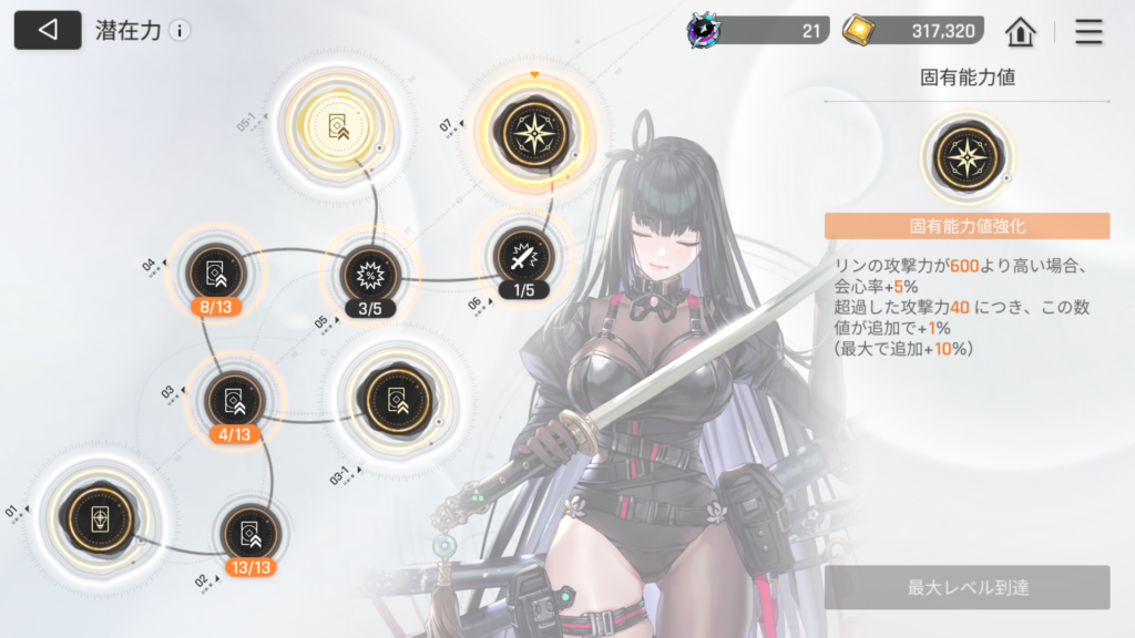 攻撃力1000を達成すると「固有能力値」のみで「会心率15%」なので、ぜひとも目指してほしいラインではあります。