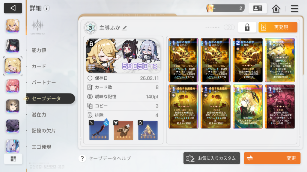 侵入していたカオスのTierがそこまで高くなかったため、コピーは2回に抑えざるを得ませんでしたが、十分に強力なセーブデータになりました。