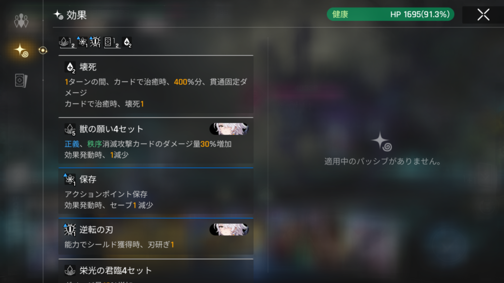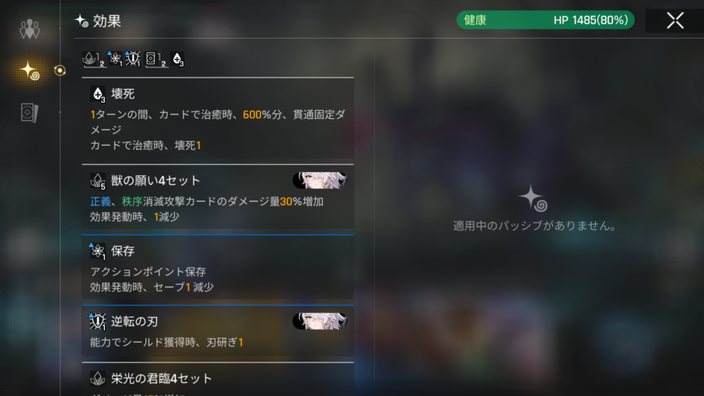 一連の内容から分かるとおり「壊死」は1ターンで使用した「治療」を持つカードの数だけ「貫通固定ダメージ」を「200%」ずつ増やしていきます。