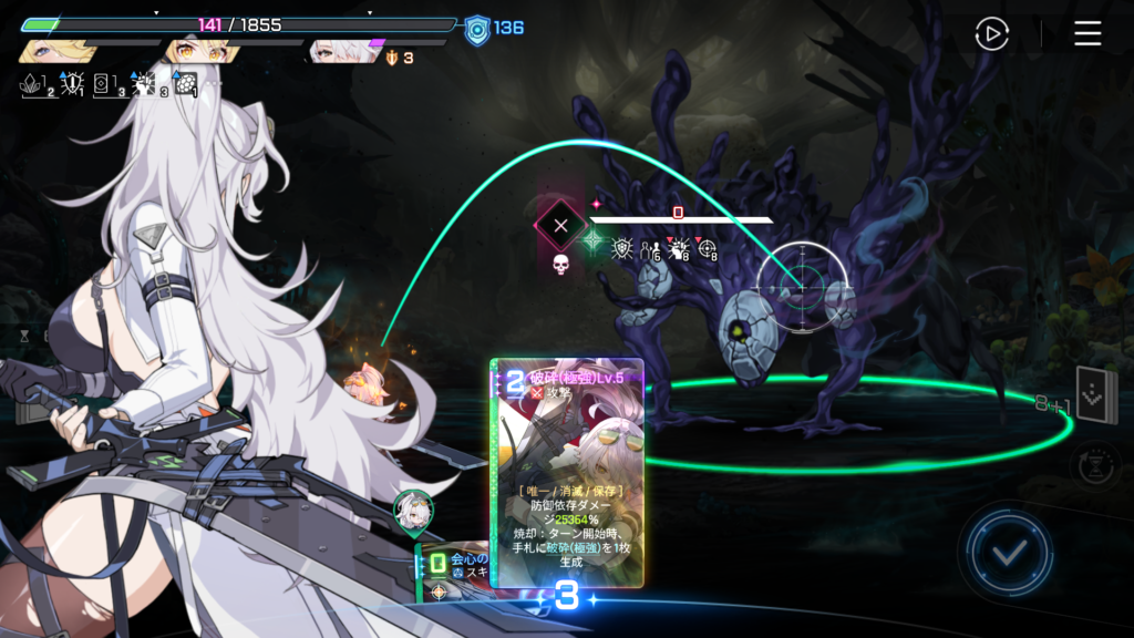そのため、セーブデータや立ち回りによっては、ナインの「破砕(極強)Lv.5」1枚で一撃必殺も不可能ではありません。